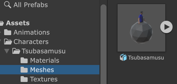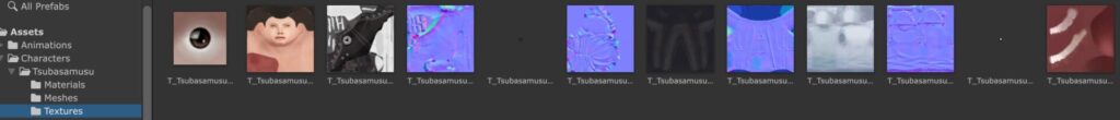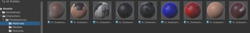 マテリアルやメッシュ、テクスチャなどのアセットが作成されるので以下のように Materials、Meshes、Textures というフォルダに分けてファイル名も修正しました。