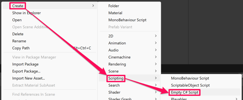 次にプロジェクトウィンドウで右クリックして「Create > MonoBehaviour Script」を選択し、RemotePlayerController というスクリプトを作成します。