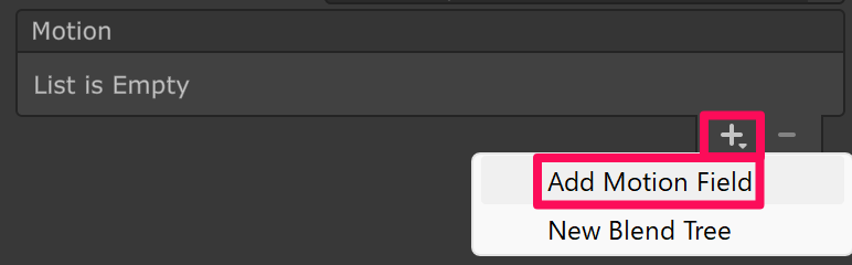 インスペクターに Motion という項目があるので「+ > Add Motion Field」を4回押して要素を4つ追加します。