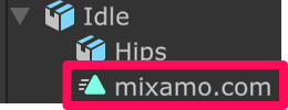 インポート後の FBX ファイルはこの画像のように、その中に Animation Clip が含まれているのでそれを取り出します。