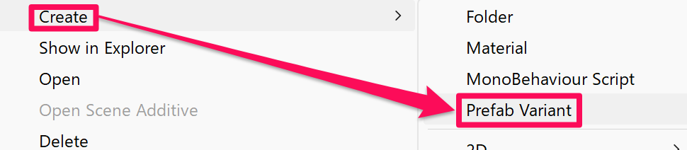 まずはローカルプレイヤー用のプレハブを作成したときと同様にプロジェクトウィンドウの PlayerCharacterBase で右クリックして「Create > Prefab Variant」を選択し、「RemotePlayerCharacter」という名前の Prefab Variant を作成します。