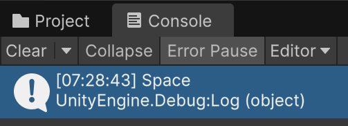 wasPressedThisFrame を使用して以下のようなコードを書くとスペースキーが押された時に一度だけ true になり、ログに「Space」と表示されます。