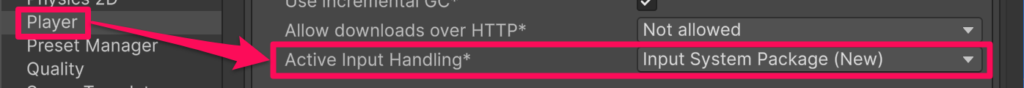 InvalidOperationException: UnityEngine.Inputクラスを使用してInputを読み込もうとしていますが、Player SettingsでアクティブなInput処理をInput Systemパッケージに切り替えています。
