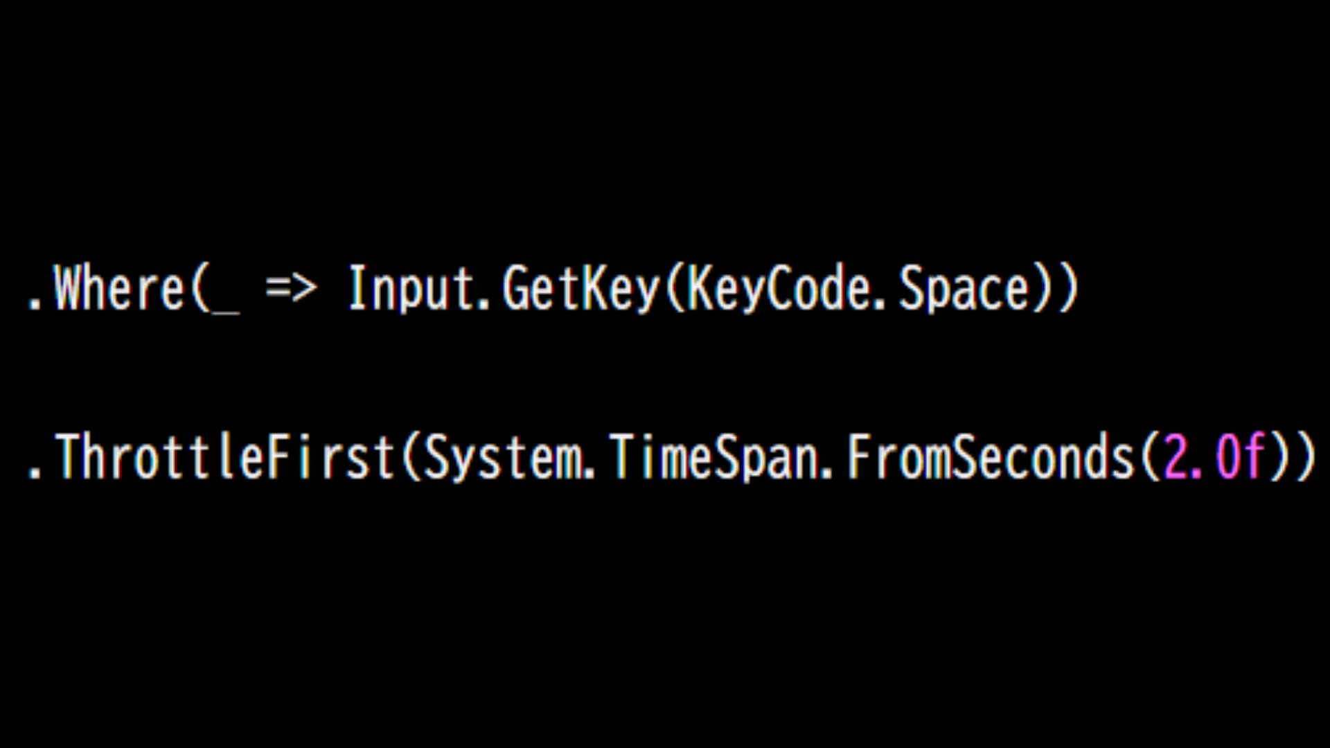この記事では UniRx の Where() と ThrottleFirst() の使用方法をメモしておきます。
